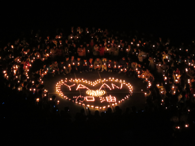 21日晚,在和谐广场、足球场、篮球场等地,来自不同院系的同学自发点燃蜡烛,为灾区群众祈福。
